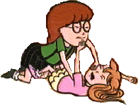 Quinn Morgendorffer Age: 14.5 Sister of Daria, daughter of Helen and Jake Quinn is Daria's popular, bimbo sister. She is The name Quinn is Irish Gaelic for 'queen' or 'one who is intelligent and wise.' Hmmm... Motto: So many dates, so little time. Would you get me a soda? Even as small children, Daria and Quinn never got along. Quote: "So I said, Just because people are cliquey and snobby is no reason not to like them." (The Invitation) "You know, the only thing worse than actually reading is watching someone else read." (The Big House) Quinn's voice is provided by Wendy Hoopes. |